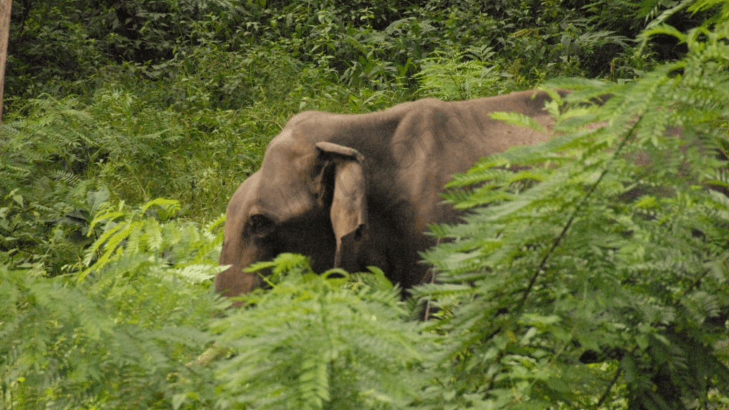 With hopes and joy we went on Safari the second day and luckily we got the Jeep this time and we had two wildlife photographers and a very enthusiastic and very knowledgeable guide with us this time. We were proudly boasting about spotting the leopard the previous day and whoa we got lucky second time too. Around the same spot we could see Saaya again perched on a tree top. The guide said, it would have hunted a large animal which it would need few days to finish and hence it could get spotted around the same spot. Later when we could also spot it’s bulky belly to support this. However this time after 15-20 mins of inaction, it actually got up moved and turned towards us and sat. The two photographers got really really good clicks and we could see their joy and hold like excitement. Later it smoothly descended down he tree and we had to retreat to search for some more sightings. My husband said I just wish I could spot langurs which are supposedly to be in large numbers there. And as if someone up there was listening to us, we spotted a Langur on a tree. With his wish fulfilled, he then said I wish I could now see an elephant too, as we hadn’t seen it yet in Kabini here. Voila, we hear an elephant trumpet and spot a lone elephant.