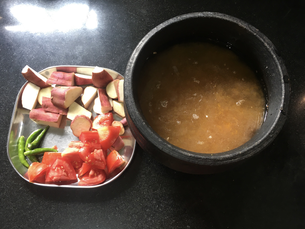 - Boil this for some more time, till the pulusu gets little creamy soupy texture.