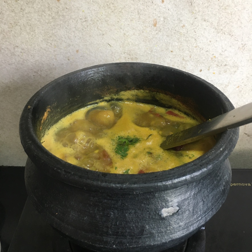 - Add curry leaves and chopped coriander too and boil this mix till the sweet potatoes are cooked.